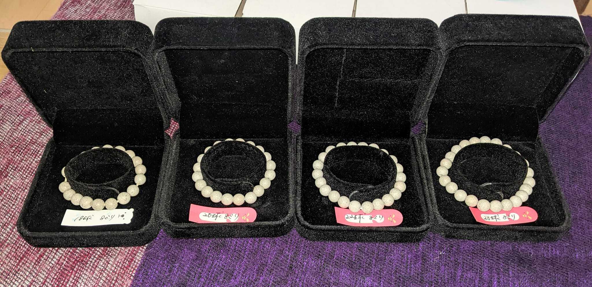 北投石の粉末をセラミックに焼き固めて製品化しています。